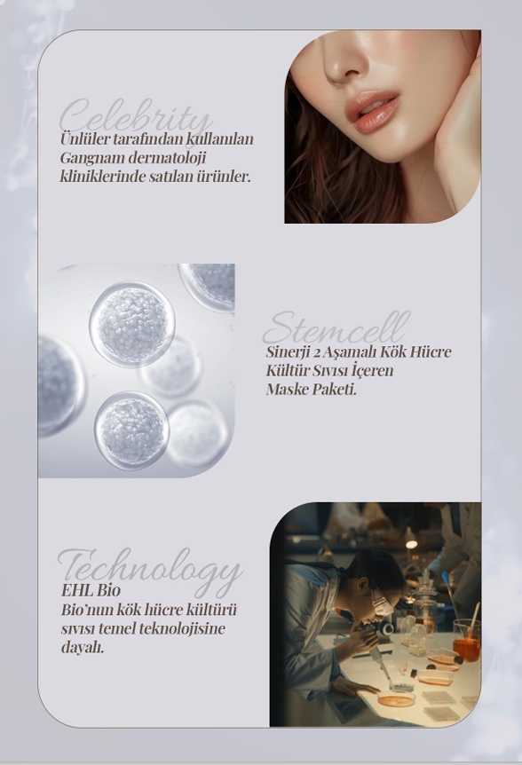 Cildinize önce güçlü bir kök hücre kremi ile etki eder, ardından maske ile bu etkiyi derinleştirerek tamamlar.