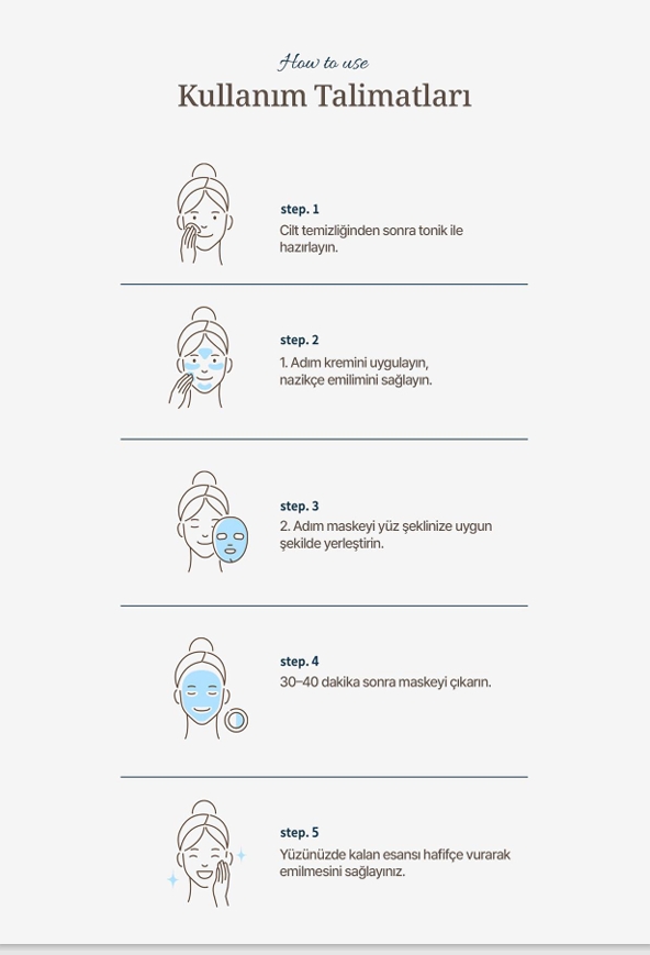 Adım 2: Maskeyi yüzünüze yerleştirin ve 15-20 dakika bekleyin.